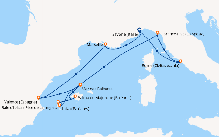 La med en Septembre au depart de Savone. Nous avons réservé cette croisière à la dernière minute pour fêter notre 48e anniversaire de mariage. Nous avons testé d’autres compagnies, mais c’est la première fois avec Costa. Pour l’occasion, nous avons choisi une cabine avec balcon située sur le pont N°11. À notre arrivée, les employés de la compagnie se chargent de nos bagages et garent notre véhicule. Après 40 minutes un personnel courtois et serviable, nous accueillent dans l’immense atrium puis nous rejoignons notre cabine par un des ascenseurs panoramiques. Nous avons pris un forfait boissons ‘tout compris’ qui nous a permis de consommer des boissons de toutes sortes. Il y a un grand choix de menus d’une qualité irréprochable servis par un personnel digne des plus grands établissements. Au théâtre Stardust, des chanteurs et danseurs exécutent des spectacles de première classe, sublimés par l’éclairage et le son dernière génération. De la pop au classique, il y en a pour tous les goûts, dans les lieux dédiés à la musique. Le salon de beauté, salon de coiffure et le spa sont tous à un prix raisonnable avec un personnel amical et serviable. Le service clients est réactif : Nous avons appelé pour un problème en cabine, quelques minutes après c’était réglé et un appel a suivi pour s’assurer que tout était OK. Si je ne devais retenir qu’une chose de cette croisière, outre les magnifiques paysages et le bateau tout confort, c’est l’extrême gentillesse de toutes les personnes qui travaillent à bord. Notre prochaine croisière sera certainement avec Costa.