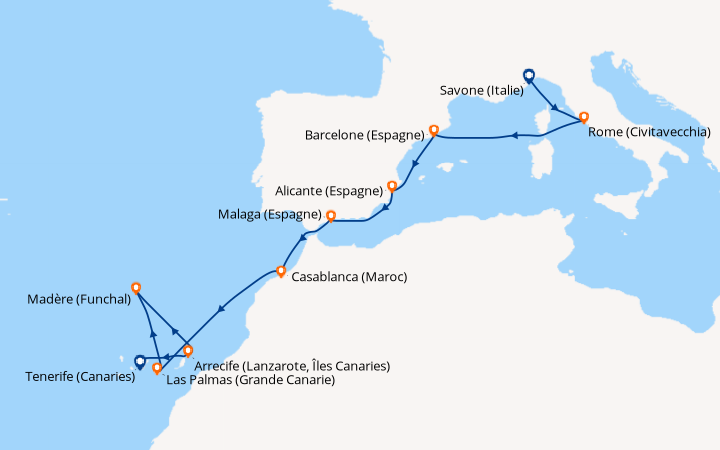 La med en Septembre au depart de Savone. Nous avons réservé cette croisière à la dernière minute pour fêter notre 48e anniversaire de mariage. Nous avons testé d’autres compagnies, mais c’est la première fois avec Costa. Pour l’occasion, nous avons choisi une cabine avec balcon située sur le pont N°11. À notre arrivée, les employés de la compagnie se chargent de nos bagages et garent notre véhicule. Après 40 minutes un personnel courtois et serviable, nous accueillent dans l’immense atrium puis nous rejoignons notre cabine par un des ascenseurs panoramiques. Nous avons pris un forfait boissons ‘tout compris’ qui nous a permis de consommer des boissons de toutes sortes. Il y a un grand choix de menus d’une qualité irréprochable servis par un personnel digne des plus grands établissements. Au théâtre Stardust, des chanteurs et danseurs exécutent des spectacles de première classe, sublimés par l’éclairage et le son dernière génération. De la pop au classique, il y en a pour tous les goûts, dans les lieux dédiés à la musique. Le salon de beauté, salon de coiffure et le spa sont tous à un prix raisonnable avec un personnel amical et serviable. Le service clients est réactif : Nous avons appelé pour un problème en cabine, quelques minutes après c’était réglé et un appel a suivi pour s’assurer que tout était OK. Si je ne devais retenir qu’une chose de cette croisière, outre les magnifiques paysages et le bateau tout confort, c’est l’extrême gentillesse de toutes les personnes qui travaillent à bord. Notre prochaine croisière sera certainement avec Costa.