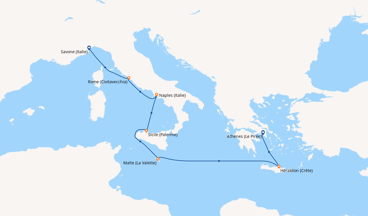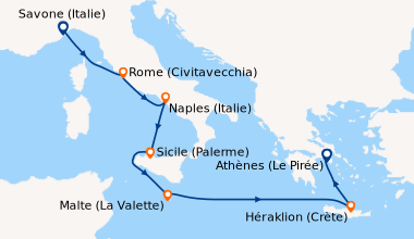 La med en Septembre au depart de Savone. Nous avons réservé cette croisière à la dernière minute pour fêter notre 48e anniversaire de mariage. Nous avons testé d’autres compagnies, mais c’est la première fois avec Costa. Pour l’occasion, nous avons choisi une cabine avec balcon située sur le pont N°11. À notre arrivée, les employés de la compagnie se chargent de nos bagages et garent notre véhicule. Après 40 minutes un personnel courtois et serviable, nous accueillent dans l’immense atrium puis nous rejoignons notre cabine par un des ascenseurs panoramiques. Nous avons pris un forfait boissons ‘tout compris’ qui nous a permis de consommer des boissons de toutes sortes. Il y a un grand choix de menus d’une qualité irréprochable servis par un personnel digne des plus grands établissements. Au théâtre Stardust, des chanteurs et danseurs exécutent des spectacles de première classe, sublimés par l’éclairage et le son dernière génération. De la pop au classique, il y en a pour tous les goûts, dans les lieux dédiés à la musique. Le salon de beauté, salon de coiffure et le spa sont tous à un prix raisonnable avec un personnel amical et serviable. Le service clients est réactif : Nous avons appelé pour un problème en cabine, quelques minutes après c’était réglé et un appel a suivi pour s’assurer que tout était OK. Si je ne devais retenir qu’une chose de cette croisière, outre les magnifiques paysages et le bateau tout confort, c’est l’extrême gentillesse de toutes les personnes qui travaillent à bord. Notre prochaine croisière sera certainement avec Costa.