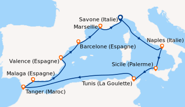 La med en Septembre au depart de Savone. Nous avons réservé cette croisière à la dernière minute pour fêter notre 48e anniversaire de mariage. Nous avons testé d’autres compagnies, mais c’est la première fois avec Costa. Pour l’occasion, nous avons choisi une cabine avec balcon située sur le pont N°11. À notre arrivée, les employés de la compagnie se chargent de nos bagages et garent notre véhicule. Après 40 minutes un personnel courtois et serviable, nous accueillent dans l’immense atrium puis nous rejoignons notre cabine par un des ascenseurs panoramiques. Nous avons pris un forfait boissons ‘tout compris’ qui nous a permis de consommer des boissons de toutes sortes. Il y a un grand choix de menus d’une qualité irréprochable servis par un personnel digne des plus grands établissements. Au théâtre Stardust, des chanteurs et danseurs exécutent des spectacles de première classe, sublimés par l’éclairage et le son dernière génération. De la pop au classique, il y en a pour tous les goûts, dans les lieux dédiés à la musique. Le salon de beauté, salon de coiffure et le spa sont tous à un prix raisonnable avec un personnel amical et serviable. Le service clients est réactif : Nous avons appelé pour un problème en cabine, quelques minutes après c’était réglé et un appel a suivi pour s’assurer que tout était OK. Si je ne devais retenir qu’une chose de cette croisière, outre les magnifiques paysages et le bateau tout confort, c’est l’extrême gentillesse de toutes les personnes qui travaillent à bord. Notre prochaine croisière sera certainement avec Costa.