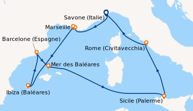 Pour notre 1 ère croisière nous avons passé une semaine extraordinaire a refaire sans problème. Le petit bémol est que pour notre croisière pour l escale au Vatican nous n avons pas pu le visiter car tout était fermé cause arrivée du Pape. Et toute les explications sur le bateau le français était très très rare donc pas évident de savoir se qu ils y avait sur le bateau