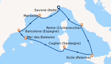 Pour notre 1 ère croisière nous avons passé une semaine extraordinaire a refaire sans problème. Le petit bémol est que pour notre croisière pour l escale au Vatican nous n avons pas pu le visiter car tout était fermé cause arrivée du Pape. Et toute les explications sur le bateau le français était très très rare donc pas évident de savoir se qu ils y avait sur le bateau