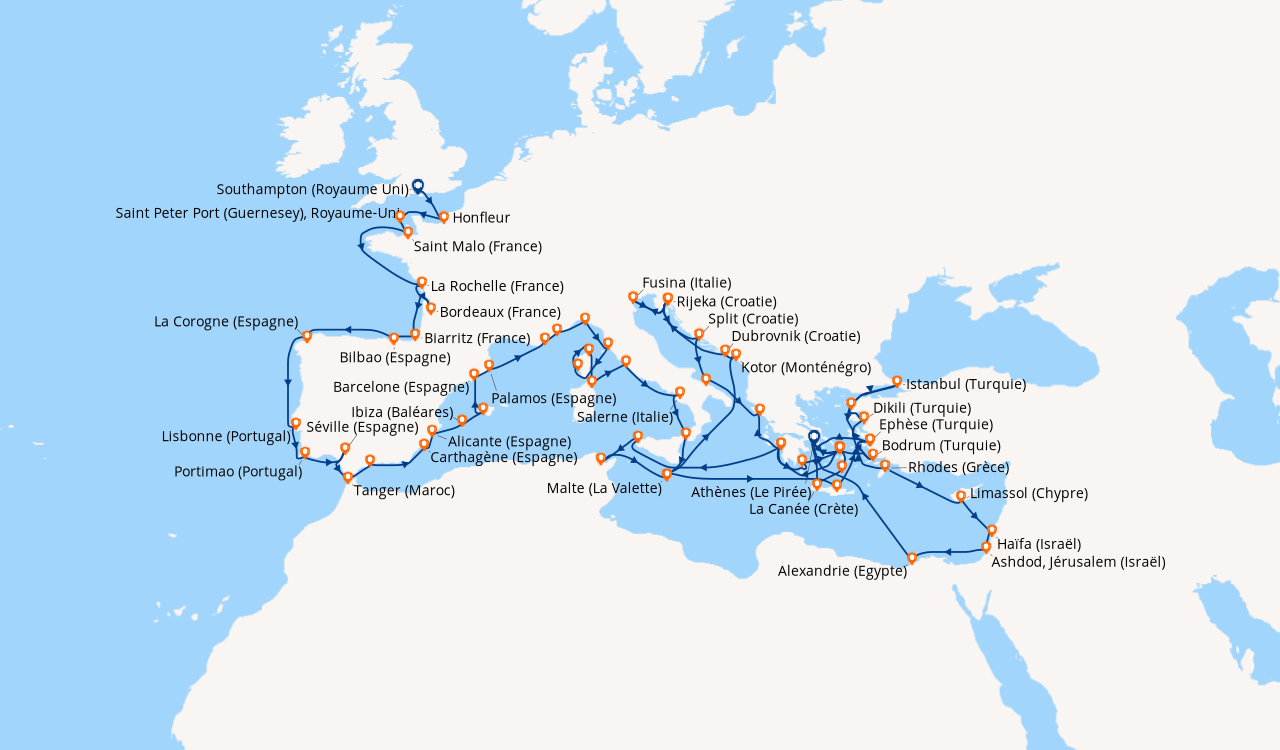 Si embarquement en Egypte, et si les hôtes ne sont pas en mesure de se procurer le visa à entrées multiples en ligne avant le départ, ils peuvent acquérir la première vignette de visa d'entrée directement à l'aéroport d'Hurghada dans les bureaux du gouvernement, en payant l'équivalent de USD 25,00. La deuxième vignette de visa d'entrée requise à la fin de la croisière, lorsque le navire retourne en Égypte, doit être achetée directement à bord au prix de 29 euros. Cette solution alternative n'est pas valable pour les nationalités nécessitant un visa pré-émis par une ambassade ou un consulat.