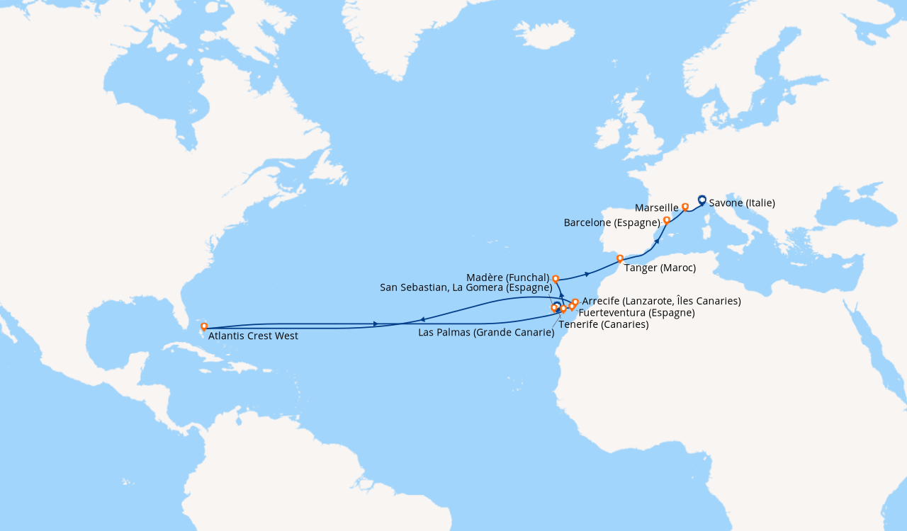 La med en Septembre au depart de Savone. Nous avons réservé cette croisière à la dernière minute pour fêter notre 48e anniversaire de mariage. Nous avons testé d’autres compagnies, mais c’est la première fois avec Costa. Pour l’occasion, nous avons choisi une cabine avec balcon située sur le pont N°11. À notre arrivée, les employés de la compagnie se chargent de nos bagages et garent notre véhicule. Après 40 minutes un personnel courtois et serviable, nous accueillent dans l’immense atrium puis nous rejoignons notre cabine par un des ascenseurs panoramiques. Nous avons pris un forfait boissons ‘tout compris’ qui nous a permis de consommer des boissons de toutes sortes. Il y a un grand choix de menus d’une qualité irréprochable servis par un personnel digne des plus grands établissements. Au théâtre Stardust, des chanteurs et danseurs exécutent des spectacles de première classe, sublimés par l’éclairage et le son dernière génération. De la pop au classique, il y en a pour tous les goûts, dans les lieux dédiés à la musique. Le salon de beauté, salon de coiffure et le spa sont tous à un prix raisonnable avec un personnel amical et serviable. Le service clients est réactif : Nous avons appelé pour un problème en cabine, quelques minutes après c’était réglé et un appel a suivi pour s’assurer que tout était OK. Si je ne devais retenir qu’une chose de cette croisière, outre les magnifiques paysages et le bateau tout confort, c’est l’extrême gentillesse de toutes les personnes qui travaillent à bord. Notre prochaine croisière sera certainement avec Costa.