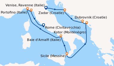 Croisière en Septembre, de Venise à L’Adriatique. Le bateau a une belle ligne. La cabine pour 4 personnes est spacieuse, fonctionnelle, bien équipée. La piscine intérieure est un lieu agréable avec son salon confortable pour la détente. La restauration est très correcte, le forfait ‘boissons tout inclus’ est vraiment économique lorsqu’on part en famille. Le personnel est gracieux, sympathique, serviable. L’équipe est très pointue sur la sécurité. La maitrise de l’anglais est impérative, toutes les informations, animations sont en anglais, sans traduction, notamment pour les exercices de sauvetage. Les spectacles sont de très grande qualité, divertissants, même si nous n’avons pas toujours compris. Nous n’avons pas aimé, le montant des pourboires, que nous trouvons prohibitifs (12euros par jour et par personne). Une croisière vraiment agréable. Noël