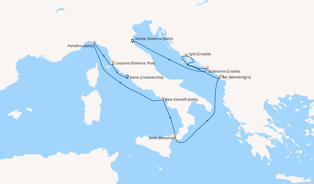 Croisière en Septembre, de Venise à L’Adriatique. Le bateau a une belle ligne. La cabine pour 4 personnes est spacieuse, fonctionnelle, bien équipée. La piscine intérieure est un lieu agréable avec son salon confortable pour la détente. La restauration est très correcte, le forfait ‘boissons tout inclus’ est vraiment économique lorsqu’on part en famille. Le personnel est gracieux, sympathique, serviable. L’équipe est très pointue sur la sécurité. La maitrise de l’anglais est impérative, toutes les informations, animations sont en anglais, sans traduction, notamment pour les exercices de sauvetage. Les spectacles sont de très grande qualité, divertissants, même si nous n’avons pas toujours compris. Nous n’avons pas aimé, le montant des pourboires, que nous trouvons prohibitifs (12euros par jour et par personne). Une croisière vraiment agréable. Noël