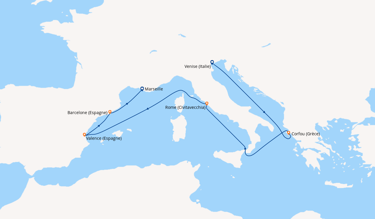 On a essayé du MSC en raison de l'itinéraire depuis Venise avec des ports en Grèce. Belle déconfiture quand nous avions réservé 5 excursions mais 3 ont été annulées car il n'y avait pas assez de clients interessés.. C'était une grosse déception. Un peu plus de positif sur la nourriture; le buffet était très bien, cabine propre également.