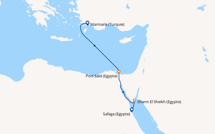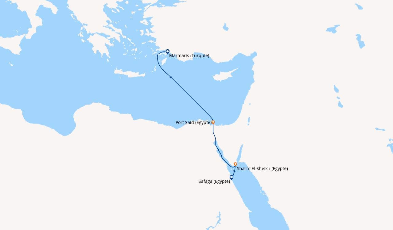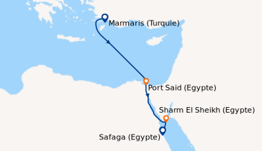 Si embarquement en Egypte, et si les hôtes ne sont pas en mesure de se procurer le visa à entrées multiples en ligne avant le départ, ils peuvent acquérir la première vignette de visa d'entrée directement à l'aéroport d'Hurghada dans les bureaux du gouvernement, en payant l'équivalent de USD 25,00. La deuxième vignette de visa d'entrée requise à la fin de la croisière, lorsque le navire retourne en Égypte, doit être achetée directement à bord au prix de 29 euros. Cette solution alternative n'est pas valable pour les nationalités nécessitant un visa pré-émis par une ambassade ou un consulat.