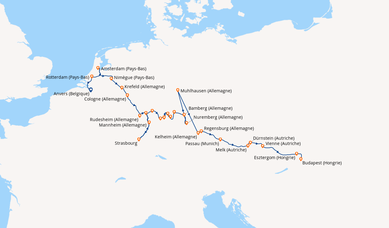 Personnel et service de cuisine soigné, nous avons bien été pris en charge. Le cocktail de bienvenue très apprécié par tout le monde, Cependant pas d'informations le long du parcours; on ne sait jamais ou on navigue et c'est très dommage. Escale à Rothenburg à privilégier, les vieux remparts et l'église st jacob très belles, on prend du plaisir à se ballader. Il y a souvent un moment de quartier libre avant de remonter à bord, ce qui est appréciable, je n'aime pas être bousculé par le temps.. ps: le pont soleil très bien, cela évite aux passagers de s'enfermer dans leur cabine, on y sociabilise facilement si on se donne la peine de discuter au voisin. Le salon panoramique très bien fait aussi