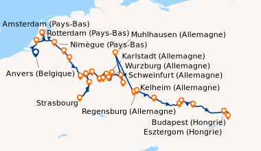 Francfort a été unnravissement total, bien organisé par Julie, c'est une ville à la fois très moderne et très traditionnelle. Nous avons fait une grande ballade à pied, la cathédrale et impéraile et le romerberg très jolis, mais il a fallu se dépécher à cause de la pluie. Nous avons fait nos excursions avec le même groupe dont 3 passagers très sympathiques et avec qui nous repartirons surement dans l'année. Les prestations et le personnelm de bord très bien et qui ne sont pas dans une logique commerciale, beaucoup de naturel chez eux.