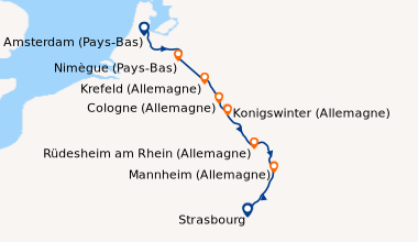 Croisière d'Amsterdam jusqu'à strasbourg, Le rhin est très agréable comme fleuve et trop peu connus des lieux comme Hoge Veluwe ou Heidelberg. La cabine est régulièrement nettoyée, toujours propre à notre arrivée, la cuisine excellente merci au chef cuisinier et aux serveurs très agréable et ouverts à la discussion.