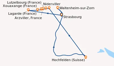 Les sorties quotidiennes étaient très intéressantes. Nous sommes allés dans une petite chapelle avec de beaux vitraux de Marc Chagall, avons fait une visite à pied de Saverne, avons visité un atelier de soufflage de verre géré par une famille d'artisants, avons exploré deux châteaux et avons dîné dans un restaurant alsacien gastronomique. Nous avons également apprécié de marcher plusieurs fois sur le chemin de halage pendant que la péniche nous suivait. Les autres passagers étaient français pour la plupart avec un couple d'anglais et un autre de luxembourgeois. Tous très aimbales! Nous espérons faire une autre croisière avec cette compagnie. Je recommande fortement cette croisière!