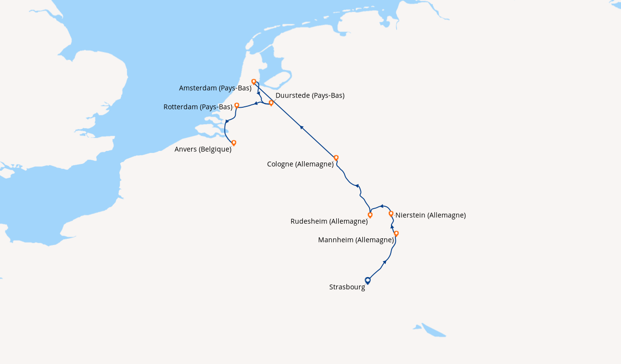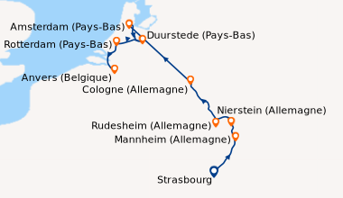 l'escapade sur le rhin s'est bien passée (partis en octobre), dommage de ne pas pouvoir suivre sur une télé la progression du bateau dans l'itinéraire, cela permettrait de se préparer plus en avance. salle de bain est peu étroite mais pas dérangeant outre mesure. Je souligne la très bonne literie. Escale à Francfort excellente, nous sommes montés en haut de la tour panoramique avant de prendre un verre, bien vu.