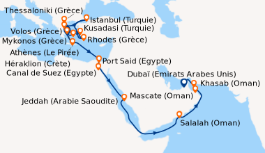Si transit en Arabie Saoudite , un "visa électronique de transit par mer de 96 heures" est nécessaire pour entrer dans le pays en payant des frais d'administration/assurance à partir de 22,00 USD (selon l'assurance choisie), dont le lien est : https://visa.mofa.gov.sa/