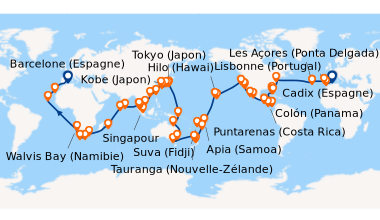 Notre navire Deliziosa est de bonne taille pour une croisière d'un mois, c'est cela qui nous a décidés finalement à réserver cette croisiere en particulier. Parallelement un service correct avec un navire toujours propre jour et nourriture variée, de bonne qualité au dîner. Cela dit, déco un peu Kitch façon "Disneyland", je ne sais pas si c'est volontaire ou non, il y a un coté baroque prononcé! L'animation, pas trop mon fort, assez bruyante a l'italienne mais rigolote. Piscine et jacuzzi en plein air a l'arrière navire, allez y pour 18h car il n'y a personne !