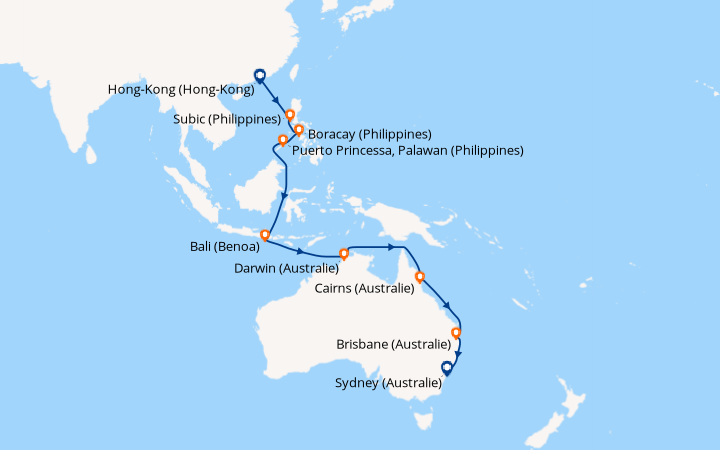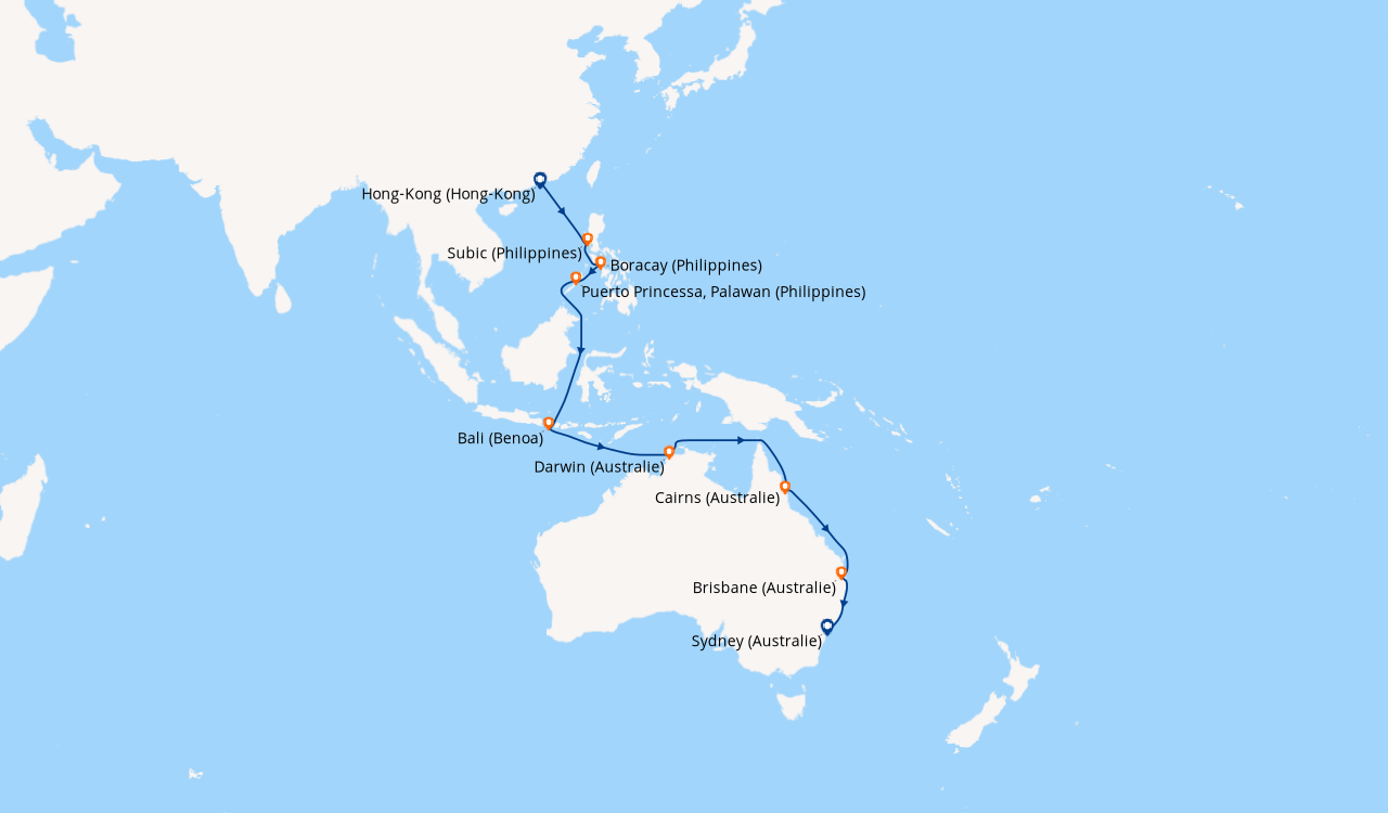 Pour les escales au Vietnam, en Chine et en Indonésie, un visa de transit, dont s'occupent en général les compagnies de croisière, est obligatoire et sera facturé dans le cadre de vos dépenses à bord.