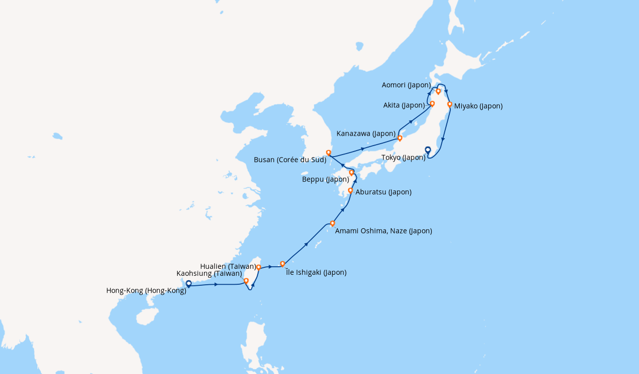 Une taxe locale japonaise (env. 1 000 ¥/passager) peut être appliquée pour les croisières faisant escale au Japon. Elle peut être facturée avant départ ou prélevée à bord selon la compagnie.