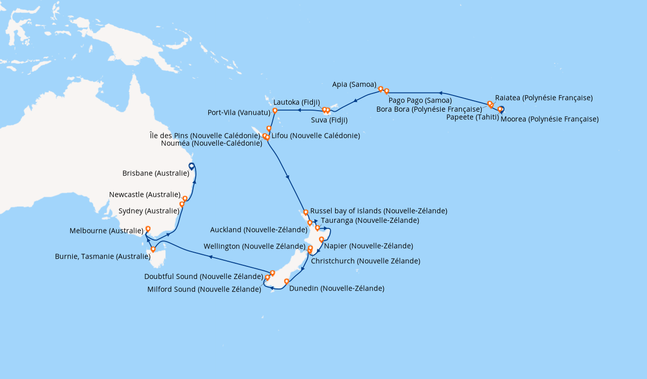 Croisière Croisières Tour Du Monde Croisières Tahiti (papeete) To Brisbane