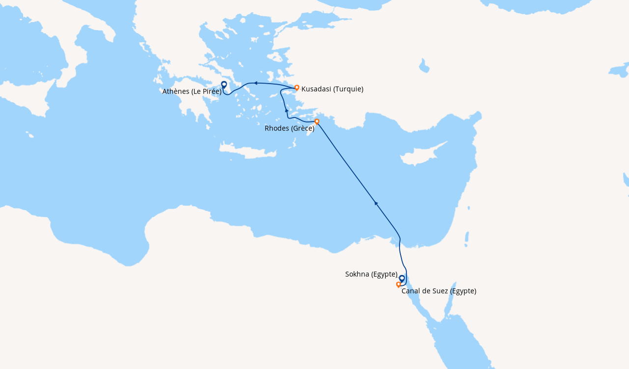 Si embarquement en Egypte, et si les hôtes ne sont pas en mesure de se procurer le visa à entrées multiples en ligne avant le départ, ils peuvent acquérir la première vignette de visa d'entrée directement à l'aéroport d'Hurghada dans les bureaux du gouvernement, en payant l'équivalent de USD 25,00. La deuxième vignette de visa d'entrée requise à la fin de la croisière, lorsque le navire retourne en Égypte, doit être achetée directement à bord au prix de 29 euros. Cette solution alternative n'est pas valable pour les nationalités nécessitant un visa pré-émis par une ambassade ou un consulat.