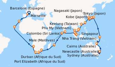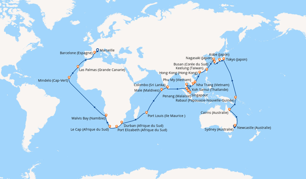 Pour les escales au Vietnam, en Chine et en Indonésie, un visa de transit, dont s'occupent en général les compagnies de croisière, est obligatoire et sera facturé dans le cadre de vos dépenses à bord.
