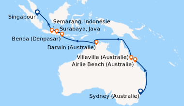 Pour les escales au Vietnam, en Chine et en Indonésie, un visa de transit, dont s'occupent en général les compagnies de croisière, est obligatoire et sera facturé dans le cadre de vos dépenses à bord.