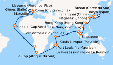 Pour les escales au Vietnam, en Chine et en Indonésie, un visa de transit, dont s'occupent en général les compagnies de croisière, est obligatoire et sera facturé dans le cadre de vos dépenses à bord.