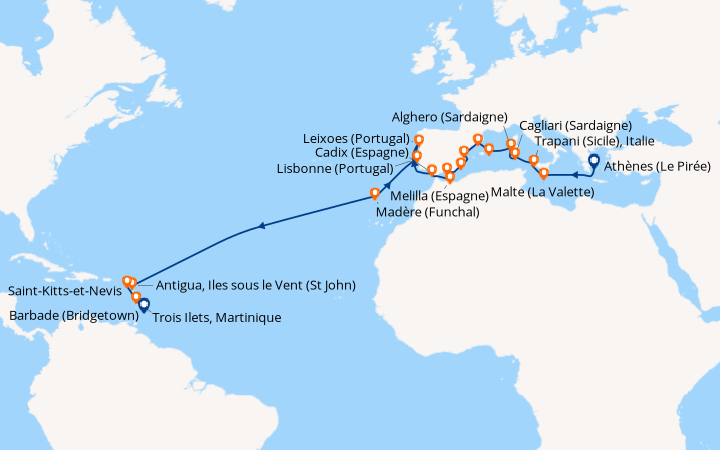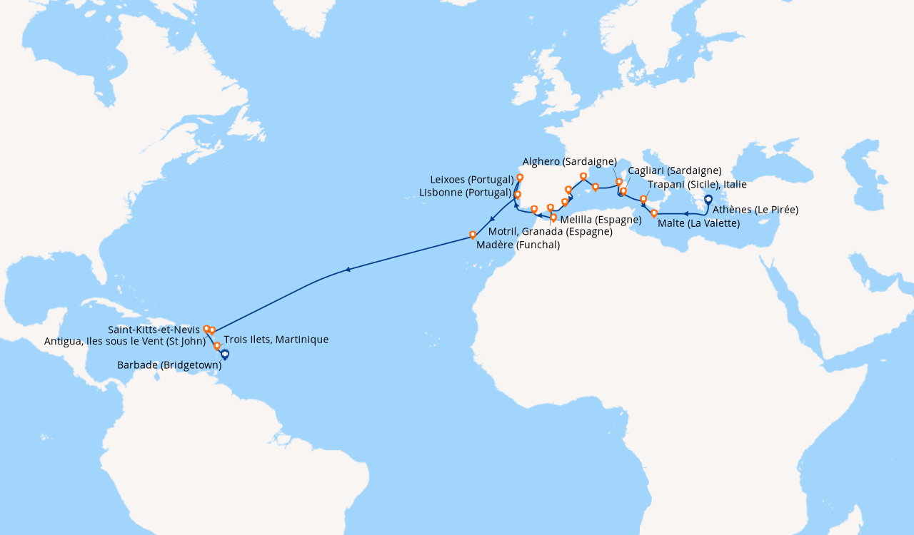 CROISIÈRE MÉLANGE MÉDITERRANÉEN ET TRAVERSÉE DE L'ATLANTIQUE