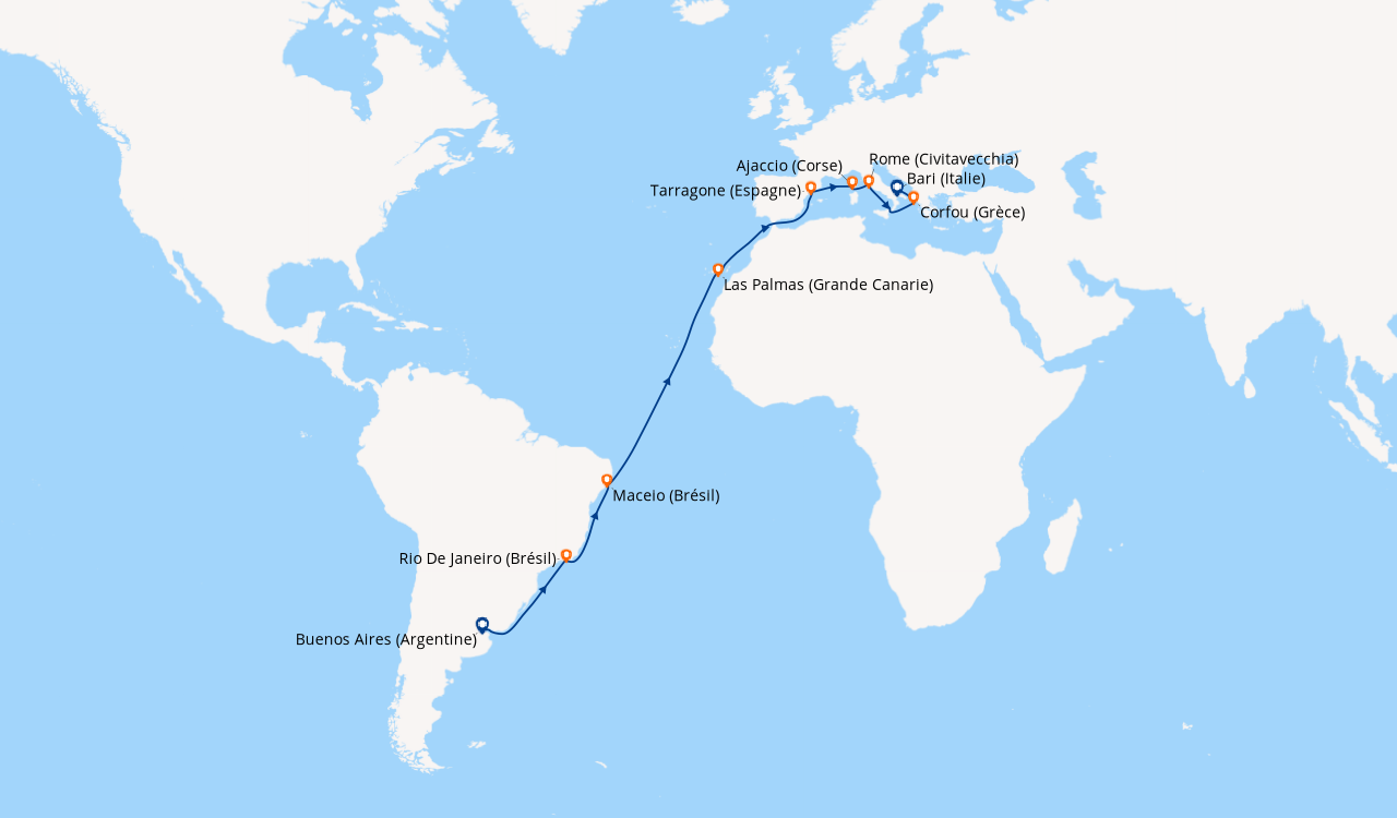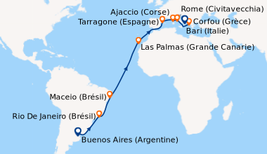 Croisière en avril’ à destination de la Méditerranée, embarquement à Marseille C’est notre première croisière avec ma femme et mes deux enfants. Avant de partir, j’ai lu des bonnes et moins bonnes critiques sur le navire, mais après notre croisière je peux affirmer que le bateau est superbe, les équipements excellents, les animations sympas, la restauration variée, le personnel chaleureux et amical. L’embarquement est rapide, sans faille. La chambre (avec balcon) est spacieuse, claire, luxueuse, avec de grands lits confortables. Nous avons pris le forfait boissons ‘tout compris’ : 480 € pour 4 personnes/ la semaine ; Il est très économique car il comprend tous les cocktails, spiritueux, vins et bières, les eaux, crèmes glacées, etc. Si vous ne choisissez pas cette option, il faut savoir que les prix sont un peu chers : cocktail 8€, pour une bouteille de bière 5,50€, pour une crème glacée 5 €. Nous avons choisi MSC croisieres parce que les enfants de moins de 12 ans voyagent gratuitement (sauf taxes portuaires bar etc.) Sans aucun frais cachés. Cela signifie, un prix abordable pour une famille de quatre personnes. Les enfants adore l’ambiance du navire, les liens d’amitiés noués avec les passagers de leur âge et les équipements : les piscines, les clubs, etc….. La croisière réunie de nombreuses familles avec enfants, des couples, des groupes, et de nombreuses nationalités dont la moyenne d’âge est assez jeune. Cette croisière sous le signe de la découverte, l’amitié, la joie de vivre, nous donne la certitude qu’il ne faut pas attendre trop longtemps pour y retourner.