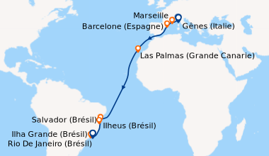 Le Divina est un grand et luxueux navire ou vous prouvez profiter de plusieurs journées en mer .La piscine arrière qui donne sur le sillage possède un charme particulier.La cuisine est de qualité et aux buffets le jambon cru italien assume magnifiquement sa réputation.Dans cette croisière de 21 jours la gentillesse et la disponibilité du personnel ont été au top.Les spectacles adaptés au standards américains ont été de qualité mais toujours un peu trop d'airs d'opéra chez MSC. Je n'apprécie toujours pas les zones réservées si chères à MSC. Sinon la fête était au rendez vous avec le passage de la ligne "inoubliable" surtout pour ceux qui l'ont subi et quelques autres animations dues à la merveilleuse humeur des 2200 Brésiliens que nous avons côtoyé. Après le choix de cette croisière nous a comblé et au delà avec les merveilleuses étape depuis Miami en passant par les paradis des iles Caraïbes les couleurs du Brésil et l'apothéose de Rio de Janeiro .