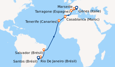 Croisière en Septembre à destination la Méditerranée, embarquement à Gênes. C’est notre première croisière, donc nous ne savions vraiment pas à quoi nous attendre après avoir lu certains commentaires. La cabine est agréable, spacieuse, bien équipée. Nous avons pris tous nos petits déjeuners et déjeuners au restaurant. C’est super de se retrouver avec des compagnons venus de divers horizons. Les tables sont devenus multiculturels ! Nous sommes allés deux fois au buffet, le service est excellent, les serveurs attentionnés. Le forfait ‘boissons tout compris' est bien utile car il couvre les cocktails, cafés, boissons non alcoolisées, eau, café etc…. Nous avons loué une excursion à terre pour la visite de Rome. Comme nous n'avons pas tenu compte du temps qu’il faut pour rejoindre le port à la ville, nous n’avons pas pu faire la totalité de la visite. Pour Palerme et Tunis, nous avons réservé avec la compagnie, aucun problème, bien que Tunis soit une étape à surveiller car il y a de nombreux filous.