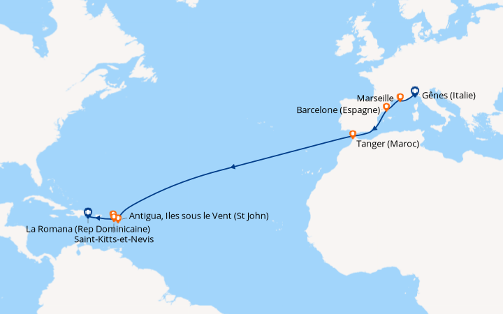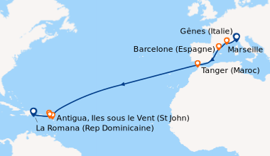Croisiere en Septembre à destination de la méditerranée, embarquement à Gêne. A mon arrivée au point d’embarquement, je découvre un navire élégant, de taille moyenne. Une fois à bord, l’intérieur affiche un style d’inspiration Art Déco avec des décors de formes géométriques et des couleurs attrayantes. Ma cabine, est équipée de tout le confort moderne, petite, bien agencée, avec des couleurs vitaminées. Grâce à l’équipage, au personnel, à l’équipe d’animations formidables, mon séjour prend rapidement les couleurs de la bonhommie italienne, marqué chaque jour par la bonne compagnie, la bonne cuisine avec son festival de menus rafinés, ses diverses animations, du lever au coucher. Juste un reproche concernant la loi anti-tabac qui prévoit des zones fumeurs parmi des zones non-fumeurs alors que des lieux spécifiques isolés seraient moins dérangeants.