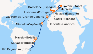 Très beau Navire le Diadema vraiement très très beau toujours dans l'esprit blinbling au niveau deco mais quand même très rafiné. Au niveau galeries sa ne vo pas un RCL Alure of the Sea ou un autre de la compagnie mais C vraiment très réussi pas de faute de goût . La salle de bar de spectacle sont très jolie avec leur jeux de lumière le son et bien repartie on ce régal. Les restaurants sont vraiment très beaux et magnifiques avec le thème diadème et les pédés restaurant privé sont aussi vraiment très joli vraiment aucune photo de groupe Costa a bien fait les choses. Après au niveau salle de spectacle je trouve toujours ça aussi petit et décevant par rapport à un paquebot un mess ou il y a des salles de spectacles immense à l'avant du bateau ,et là on voit vraiment du vrai spectacle on s'ennuie pas sur MSC classe fantasia /Splandida / Divina/Preziosa. Après pour ce qui est pont-promenade on se régale on prend le temps de marcher et de regarder la mère et les couchers de soleil c'est du vrai plaisir. Après pour moi le concert de demain est le plus beau navire de la flotte il a une très belle silhouette que j'aime particulièrement par contre il avait même problème de stabilité nous avons chopé une merdes force huite et franchement il bouger mais grave. Après je trouve que Costa fait un gros effort pour manger au niveau de la masser c'est pas encore ça mais il y a du mieux voilà je je souhaite à toutes les personnes qui veulent faire une croisière sur le Costa Diadema de prendre le temps de tout voir ce qu'il y a voir ce ce magnifique Paquebot de croisière de chez Costa. je le reprendrai.