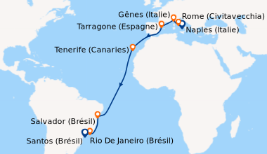 Le Divina est un grand et luxueux navire ou vous prouvez profiter de plusieurs journées en mer .La piscine arrière qui donne sur le sillage possède un charme particulier.La cuisine est de qualité et aux buffets le jambon cru italien assume magnifiquement sa réputation.Dans cette croisière de 21 jours la gentillesse et la disponibilité du personnel ont été au top.Les spectacles adaptés au standards américains ont été de qualité mais toujours un peu trop d'airs d'opéra chez MSC. Je n'apprécie toujours pas les zones réservées si chères à MSC. Sinon la fête était au rendez vous avec le passage de la ligne "inoubliable" surtout pour ceux qui l'ont subi et quelques autres animations dues à la merveilleuse humeur des 2200 Brésiliens que nous avons côtoyé. Après le choix de cette croisière nous a comblé et au delà avec les merveilleuses étape depuis Miami en passant par les paradis des iles Caraïbes les couleurs du Brésil et l'apothéose de Rio de Janeiro .