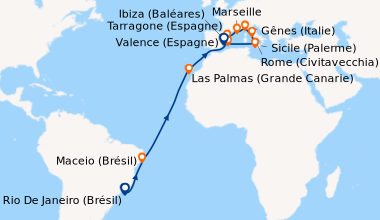 Croisière en Septembre à destination la Méditerranée, embarquement à Gênes. C’est notre première croisière, donc nous ne savions vraiment pas à quoi nous attendre après avoir lu certains commentaires. La cabine est agréable, spacieuse, bien équipée. Nous avons pris tous nos petits déjeuners et déjeuners au restaurant. C’est super de se retrouver avec des compagnons venus de divers horizons. Les tables sont devenus multiculturels ! Nous sommes allés deux fois au buffet, le service est excellent, les serveurs attentionnés. Le forfait ‘boissons tout compris' est bien utile car il couvre les cocktails, cafés, boissons non alcoolisées, eau, café etc…. Nous avons loué une excursion à terre pour la visite de Rome. Comme nous n'avons pas tenu compte du temps qu’il faut pour rejoindre le port à la ville, nous n’avons pas pu faire la totalité de la visite. Pour Palerme et Tunis, nous avons réservé avec la compagnie, aucun problème, bien que Tunis soit une étape à surveiller car il y a de nombreux filous.