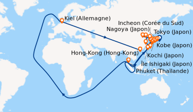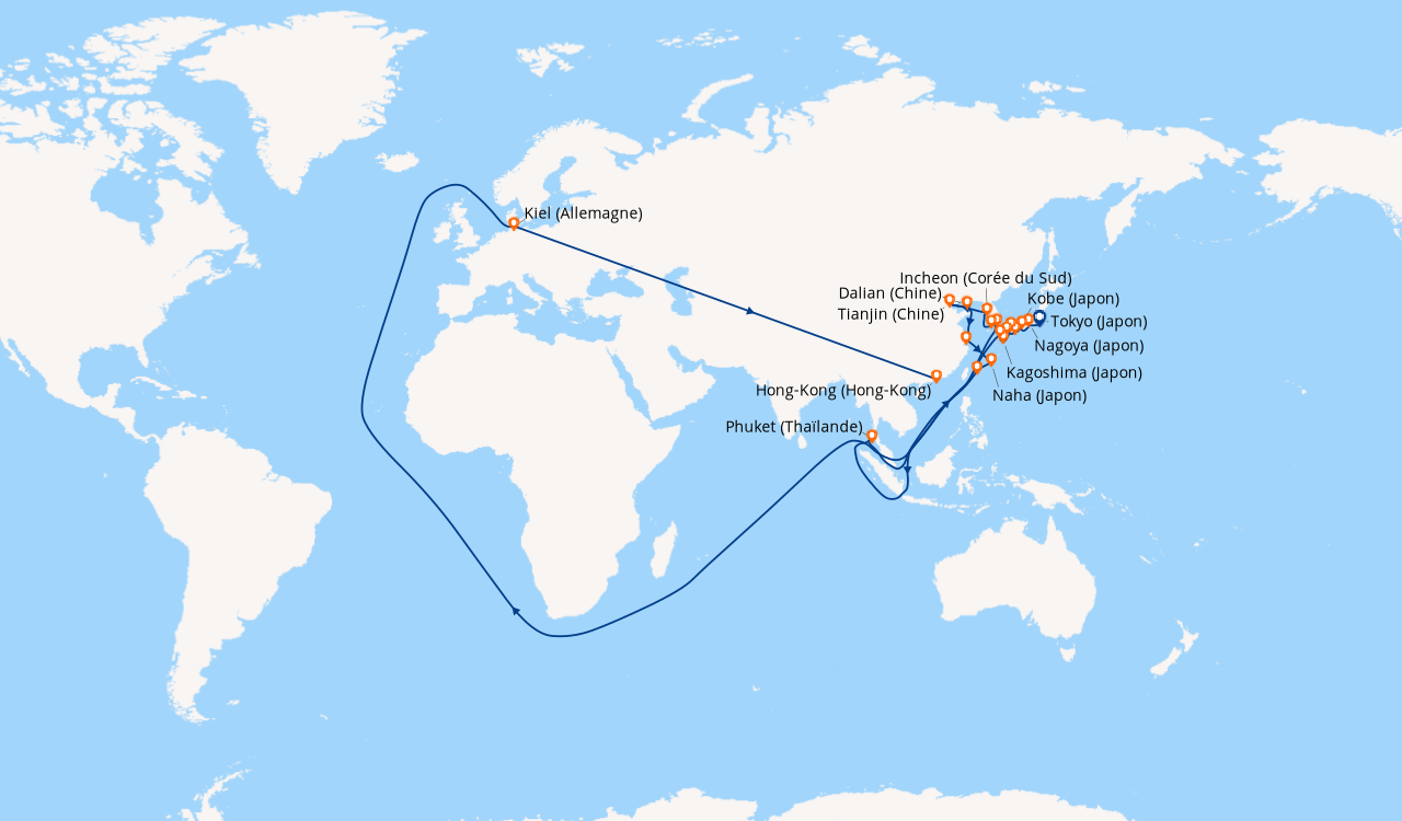 Une taxe locale japonaise (env. 1 000 ¥/passager) peut être appliquée pour les croisières faisant escale au Japon. Elle peut être facturée avant départ ou prélevée à bord selon la compagnie.
