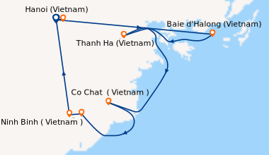Nous sommes partis de Paris jusqu'a Hanoi en avion et dès notre arrivée nous avons été traités comme des princes, réelement epoustouflant comme voyage, surtout que nous e voulions pas de croisière au départ. Mausolée d'Ho chi minh splendide, beaucoup de belle escales sur la rivière Lo et le fleuve rouge, les 2semaines sont passées bien vitre à notre grand regret. Nous avons vécu une belle experience, nous n'oublierons jamais le coucher de soleil sur la baie d'along, mieux que dans les films !!