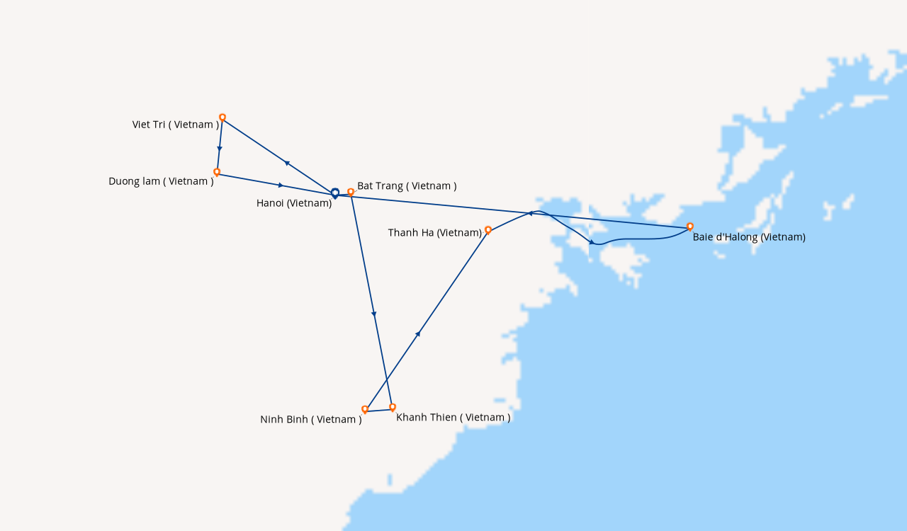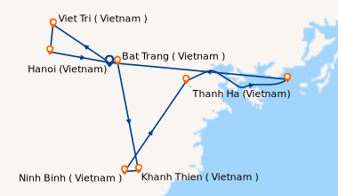 Nous sommes partis de Paris jusqu'a Hanoi en avion et dès notre arrivée nous avons été traités comme des princes, réelement epoustouflant comme voyage, surtout que nous e voulions pas de croisière au départ. Mausolée d'Ho chi minh splendide, beaucoup de belle escales sur la rivière Lo et le fleuve rouge, les 2semaines sont passées bien vitre à notre grand regret. Nous avons vécu une belle experience, nous n'oublierons jamais le coucher de soleil sur la baie d'along, mieux que dans les films !!